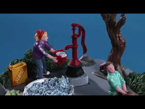 Описание: Девушка поворачивается из стороны в сторону, чтобы набрать воды.