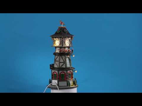Поезда / Дед Мороз вращается вокруг башни с часами.